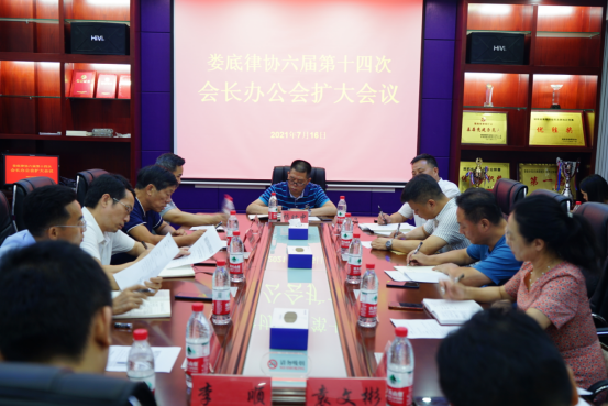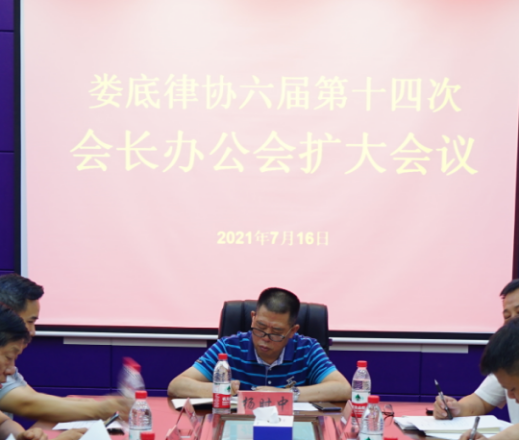 娄底市律协第六届第十四次会长办公会扩大会议召开2021年7月16日,娄底市律协第六届第十四次会长办公会扩大会议在市律协会议室召开,市司法局党组副书记、副局长、市律师行业党委书记杨时中出席并讲话。市律师协会会长、副会长、副监事长、秘书长、副秘书长、青工委主任、文体委主任、女工委主任、教培委主任、财资委主任参加会议。会议由会长刘中杰主持。