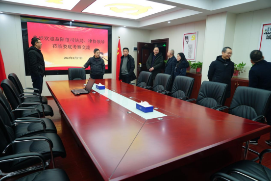 2022年2月17日,益阳市司法局律师科科长、律师行业党委副书记杨建宇一行来到我市开展考察交流活动,娄底市司法局党组副书记、副局长、律师行业党委书记杨时中等接待陪同。