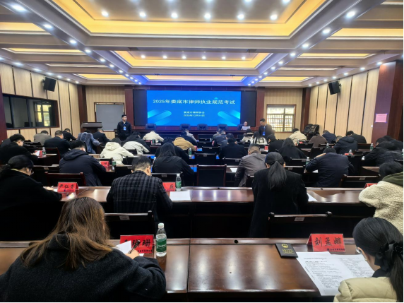 为进一步增强全市律师依法执业、诚信执业、规范执业意识,深化“做党和人民满意的好律师”主题活动,提升全市律师职业素养,2025年12月14日,市律师协会以抽考形式组织64名专职律师、5名实习律师在市司法局二楼、七楼会议室集中进行律师执业规范闭卷考试。市司法局党组成员、副局长、市律师行业党委书记戴华彪到考试现场督导。